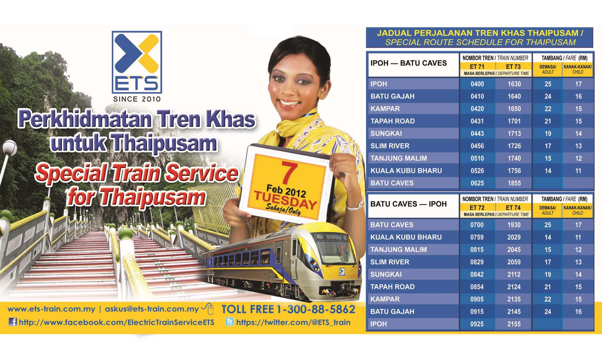 This route is almost always busy throughout the year. Select an option below to see step-by-step directions and to compare ticket prices and travel times in Rome2rios travel planner. 5 rows ETS Ipoh to Tanjung Malim Train Schedule Jadual Taking the ETS Ipoh to Tanjung Malim.